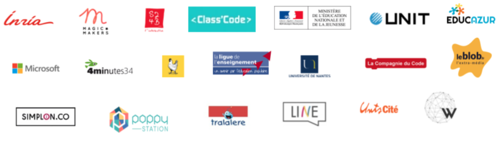 *Une co-production Class’Code avec Inria, Magic Makers , S24B interactive, la participation de 4 minutes 34, Data Bingo, Université de Nantes, La Compagnie du Code et de La Ligue de l’enseignement, et avec le soutien du Ministère de l’Éducation nationale et de la Jeunesse, UNIT, Educazur et leblob.fr, avec le concours et la collaboration de :